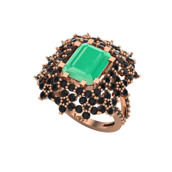 Kök zümrüt ve siyah zirkon 8 ayar rose altın yüzük