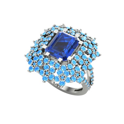 Lab safir ve akuamarin 8 ayar beyaz altın yüzük