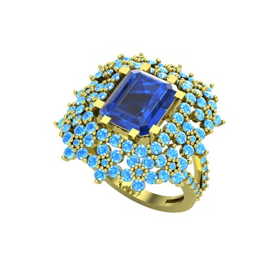 Lab safir ve akuamarin 925 ayar altın kaplama gümüş yüzük