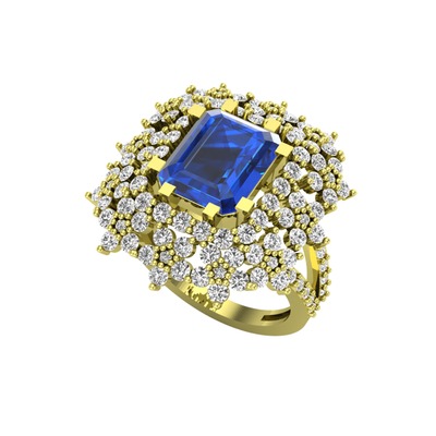 Lab safir ve beyaz zirkon 18 ayar altın yüzük