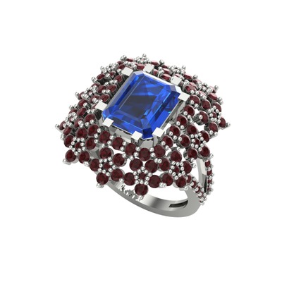 Lab safir ve kök yakut 8 ayar beyaz altın yüzük