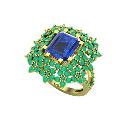 Lab safir ve kök zümrüt 14 ayar altın yüzük