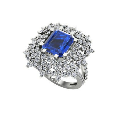 Lab safir ve pırlanta 18 ayar beyaz altın yüzük (1.725 karat)