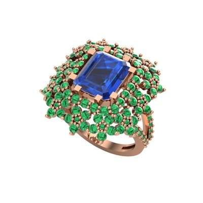Lab safir ve yeşil kuvars 14 ayar rose altın yüzük