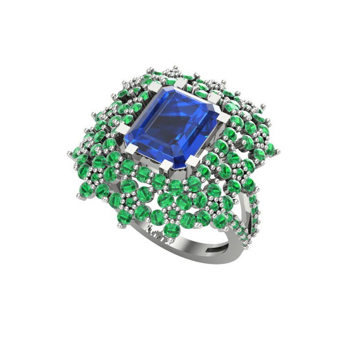 Lab safir ve yeşil kuvars 18 ayar beyaz altın yüzük