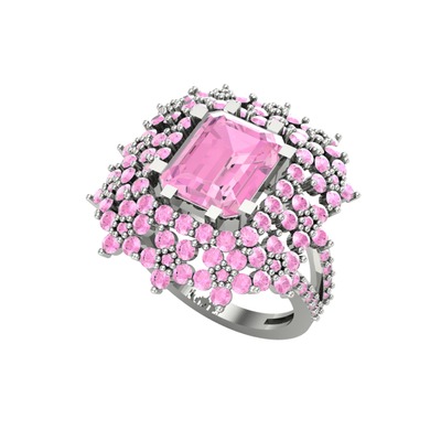 Pembe kuvars 18 ayar beyaz altın yüzük
