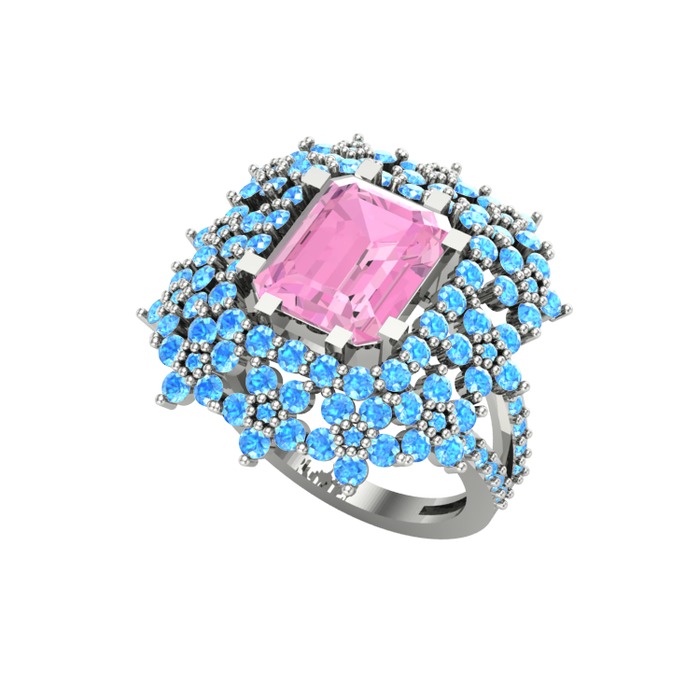 Pembe kuvars ve akuamarin 14 ayar beyaz altın yüzük