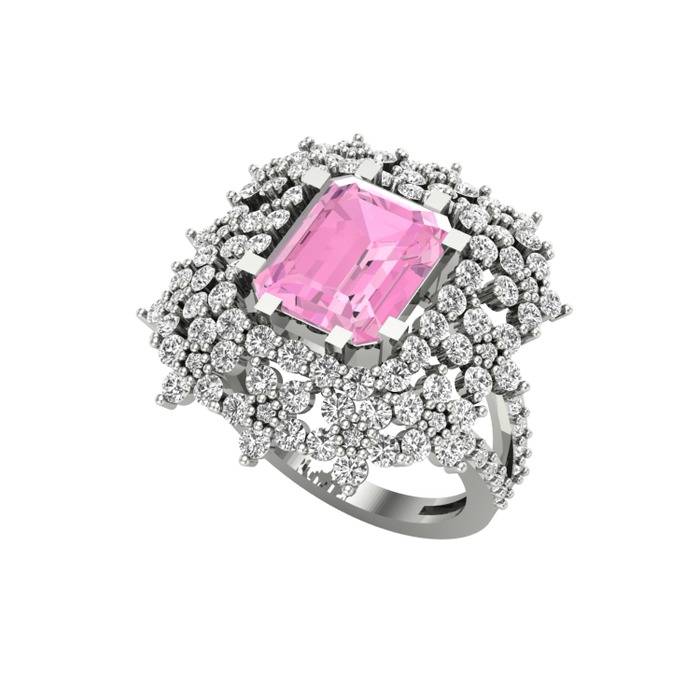 Pembe kuvars ve beyaz zirkon 8 ayar beyaz altın yüzük