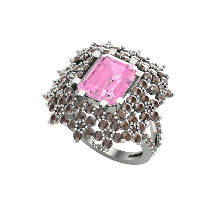 Pembe kuvars ve dumanlı kuvars 8 ayar beyaz altın yüzük