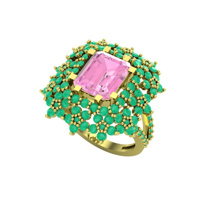 Pembe kuvars ve kök zümrüt 925 ayar altın kaplama gümüş yüzük