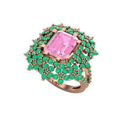 Pembe kuvars ve kök zümrüt 925 ayar rose altın kaplama gümüş yüzük