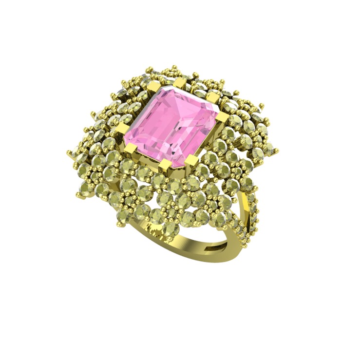 Pembe kuvars ve peridot 925 ayar altın kaplama gümüş yüzük