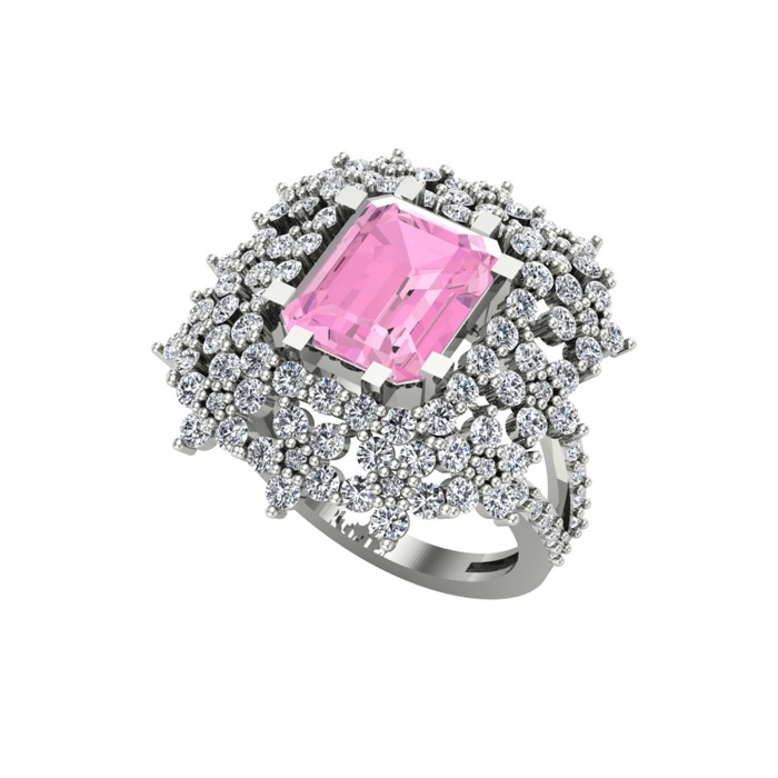 Pembe kuvars ve pırlanta 925 ayar gümüş yüzük (1.725 karat)