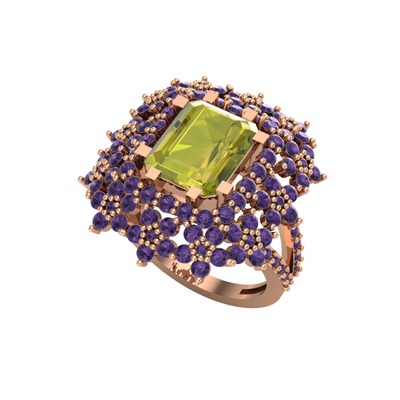 Peridot ve ametist 8 ayar rose altın yüzük