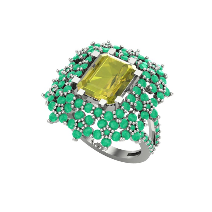 Peridot ve kök zümrüt 14 ayar beyaz altın yüzük