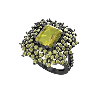 Peridot 925 ayar siyah rodyum kaplama gümüş yüzük