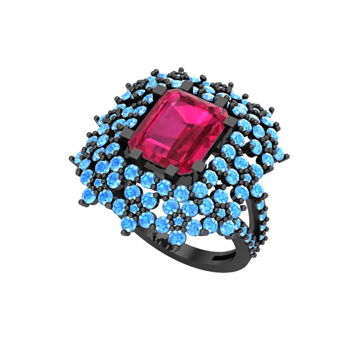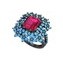 Rodolit garnet ve akuamarin 925 ayar siyah rodyum kaplama gümüş yüzük