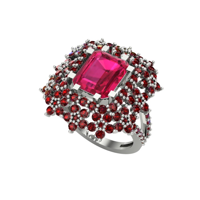 Rodolit garnet ve garnet 14 ayar beyaz altın yüzük