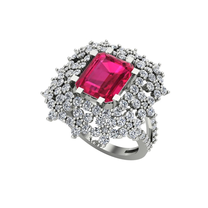 Rodolit garnet ve pırlanta 14 ayar beyaz altın yüzük (1.725 karat)