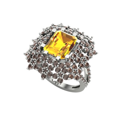 Sitrin ve dumanlı kuvars 8 ayar beyaz altın yüzük