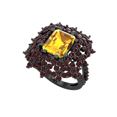 Sitrin ve kök yakut 925 ayar siyah rodyum kaplama gümüş yüzük