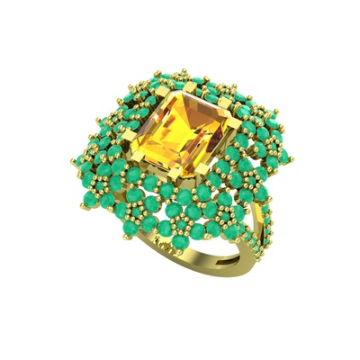 Sitrin ve kök zümrüt 8 ayar altın yüzük
