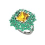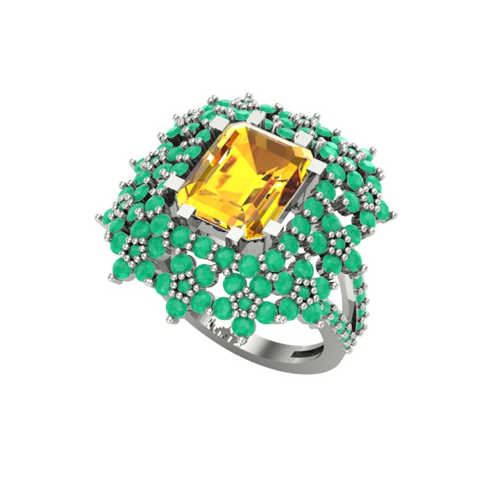 Sitrin ve kök zümrüt 8 ayar beyaz altın yüzük