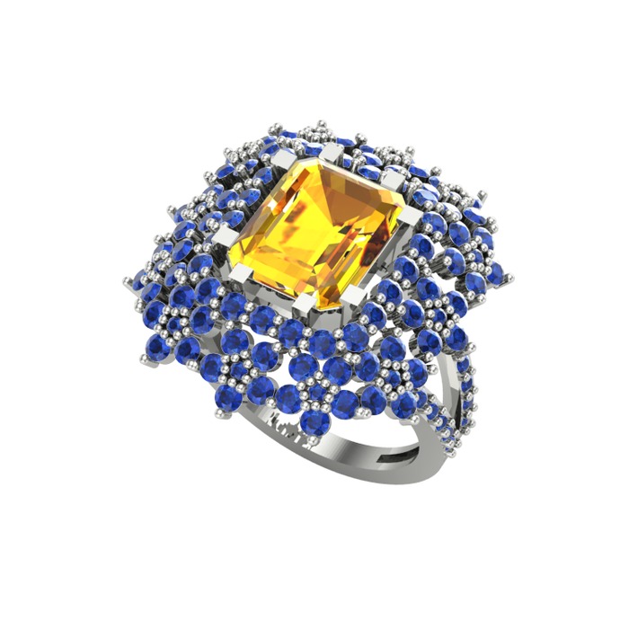 Sitrin ve lab safir 18 ayar beyaz altın yüzük