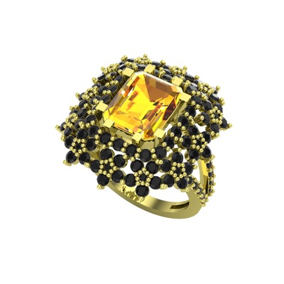 Sitrin ve siyah zirkon 8 ayar altın yüzük