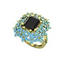 Siyah zirkon ve akuamarin 8 ayar altın yüzük