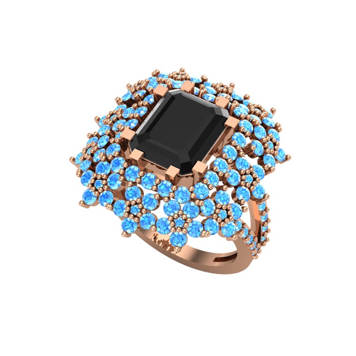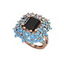 Siyah zirkon ve akuamarin 925 ayar rose altın kaplama gümüş yüzük
