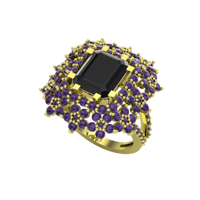 Siyah zirkon ve ametist 18 ayar altın yüzük