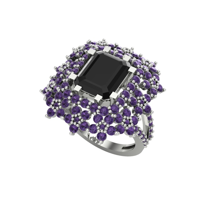 Siyah zirkon ve ametist 8 ayar beyaz altın yüzük