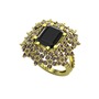 Siyah zirkon ve dumanlı kuvars 14 ayar altın yüzük