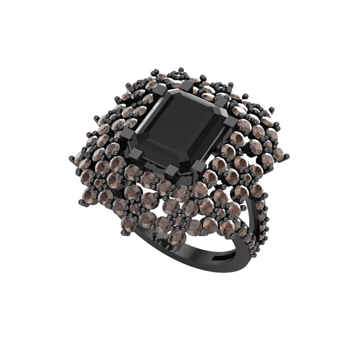 Siyah zirkon ve dumanlı kuvars 925 ayar siyah rodyum kaplama gümüş yüzük