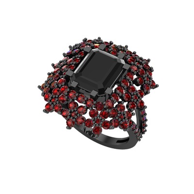 Siyah zirkon ve garnet 925 ayar siyah rodyum kaplama gümüş yüzük