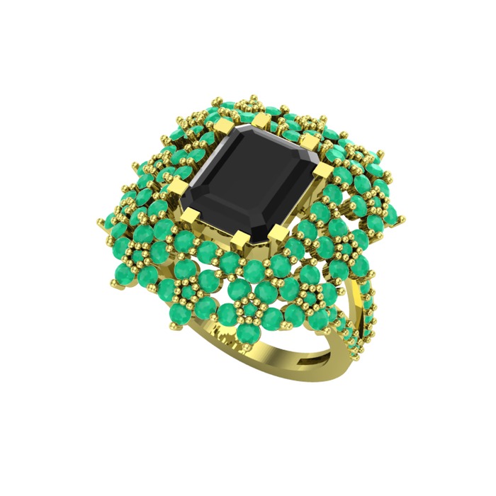 Siyah zirkon ve kök zümrüt 8 ayar altın yüzük