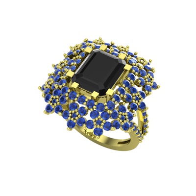 Siyah zirkon ve lab safir 925 ayar altın kaplama gümüş yüzük
