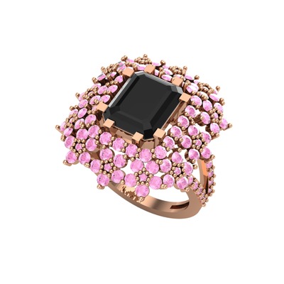 Siyah zirkon ve pembe kuvars 8 ayar rose altın yüzük