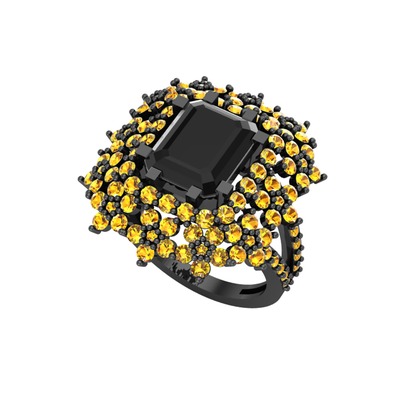 Siyah zirkon ve sitrin 925 ayar siyah rodyum kaplama gümüş yüzük