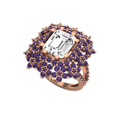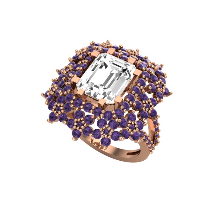 Swarovski ve ametist 14 ayar rose altın yüzük