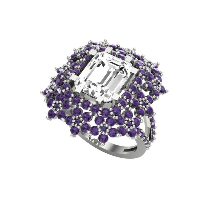 Swarovski ve ametist 18 ayar beyaz altın yüzük
