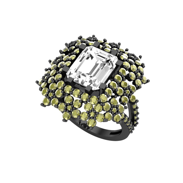 Swarovski ve peridot 925 ayar siyah rodyum kaplama gümüş yüzük