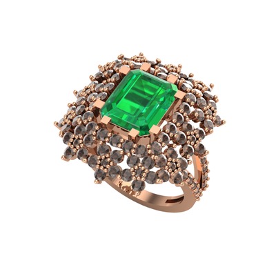 Yeşil kuvars ve dumanlı kuvars 14 ayar rose altın yüzük