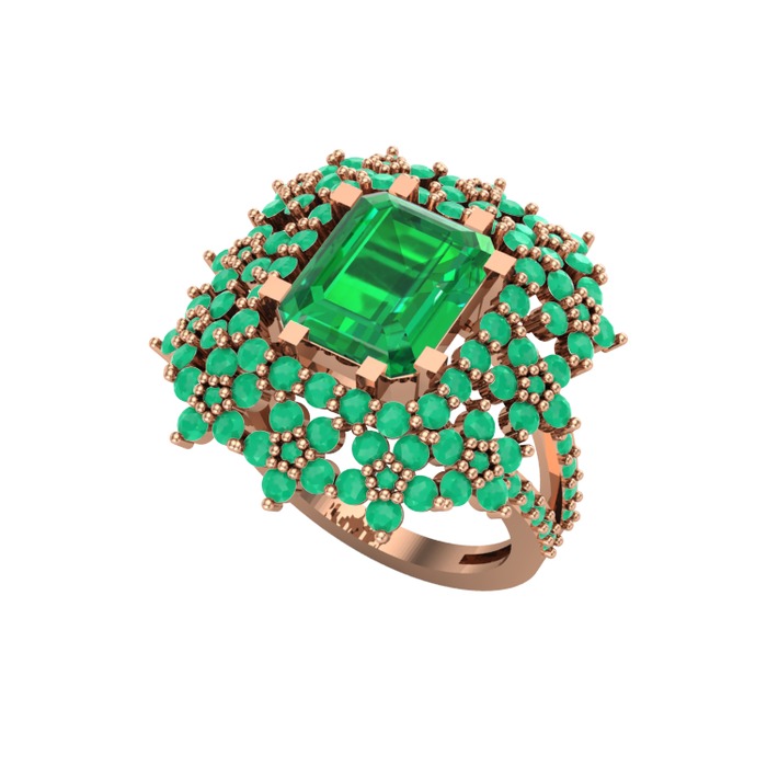 Yeşil kuvars ve kök zümrüt 14 ayar rose altın yüzük
