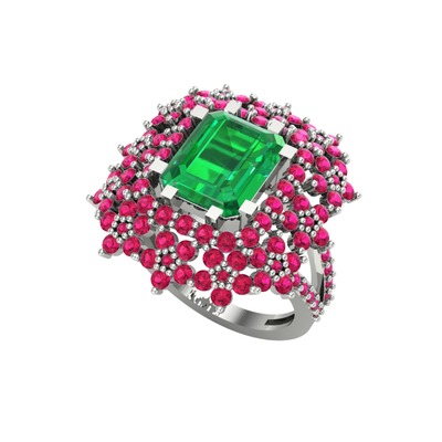 Yeşil kuvars ve rodolit garnet 18 ayar beyaz altın yüzük