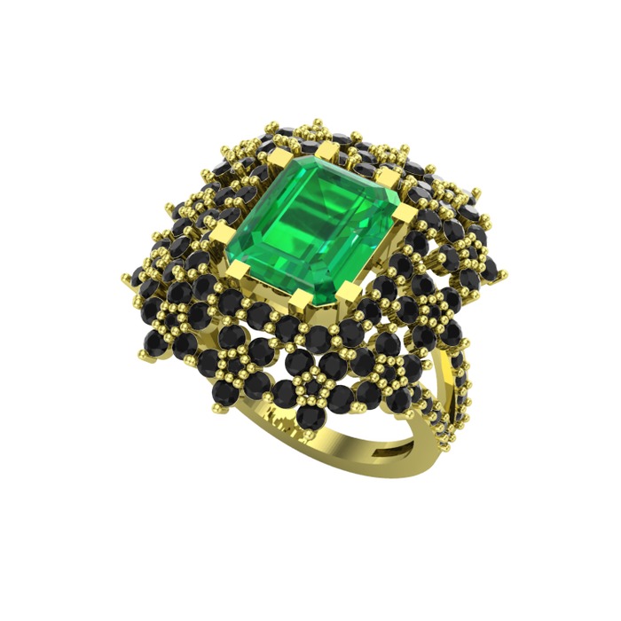 Yeşil kuvars ve siyah zirkon 925 ayar altın kaplama gümüş yüzük