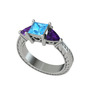 Akuamarin ve ametist 14 ayar beyaz altın yüzük