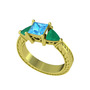 Akuamarin ve kök zümrüt 14 ayar altın yüzük
