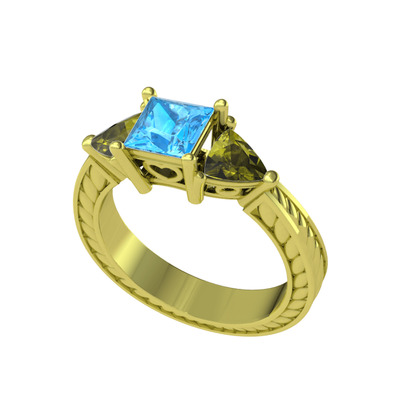 Akuamarin ve peridot 925 ayar altın kaplama gümüş yüzük